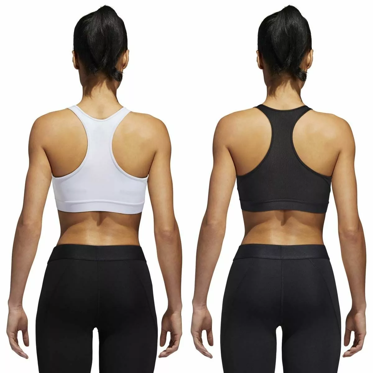 The Adidas alphaskin sports bra gently hugs the body. It offers light support perfect for hiking or weight training. It is made with climacool technology that channels fresh air to the skin while reducing the build up of heat and sweat. This sports bra is made of soft, stretch knit with a mesh back to make for proper ventilation.