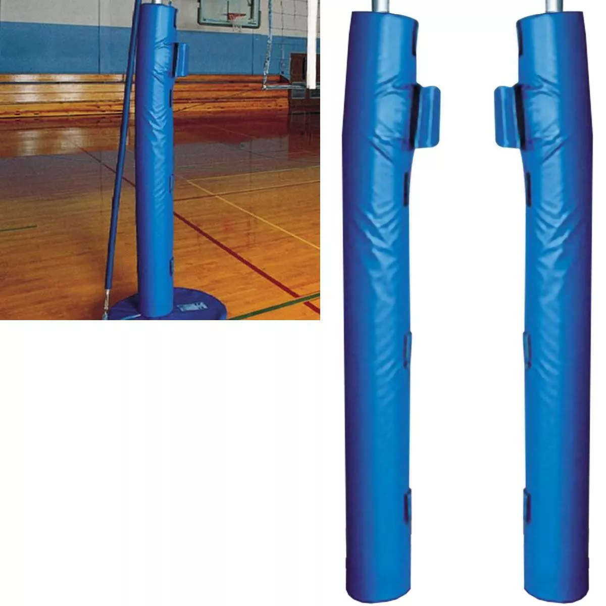 Prevent accidents and injuries to your players with the game standard pole pads from Alumagoal, designed to fit around 3” (outside diameter) poles or smaller. The 6’H and 2” thick foam pads are covered in a durable blue vinyl that fits snuggly around standard poles and attaches/releases easily with the hook and loop fasteners. Base pad also available (see #A60-128 below).