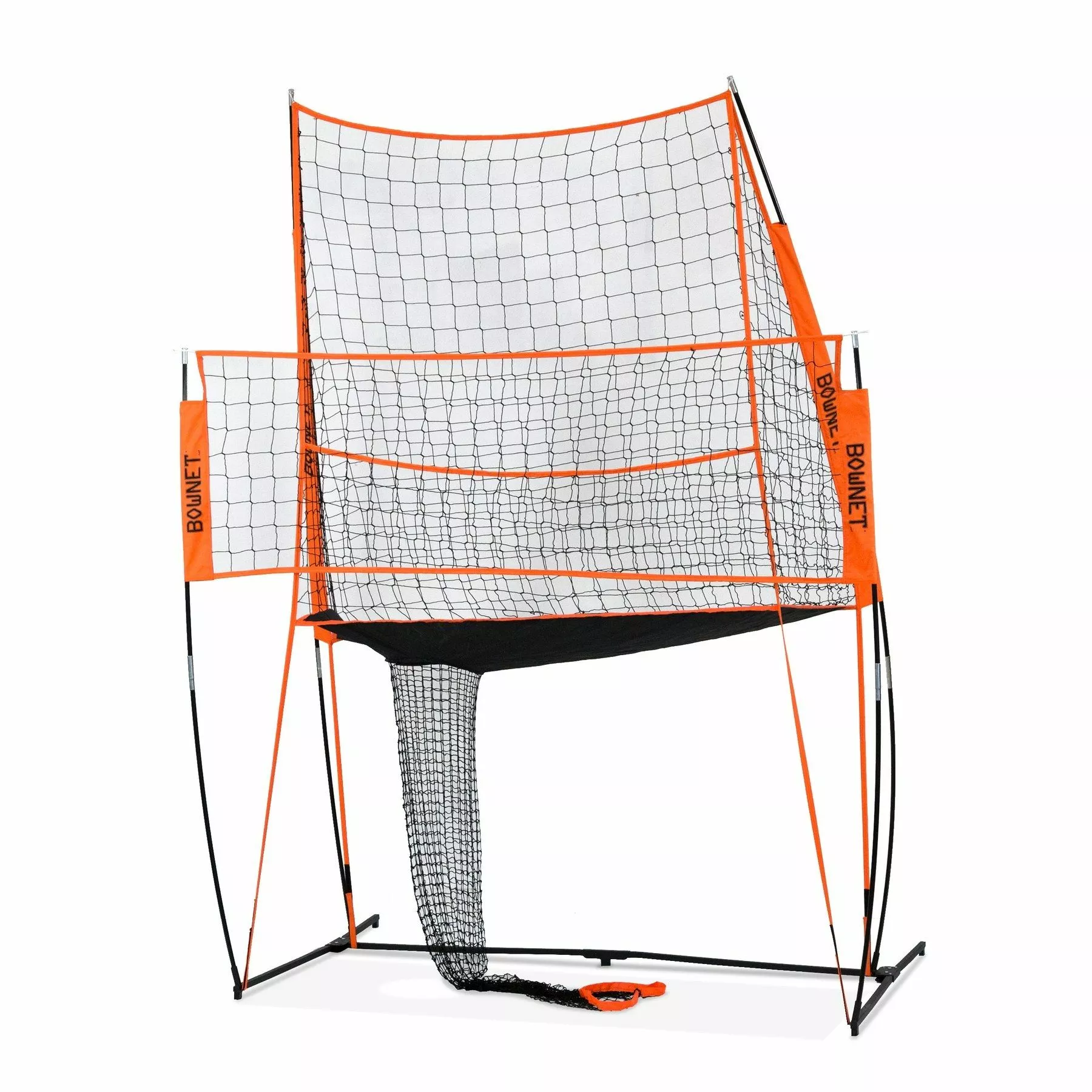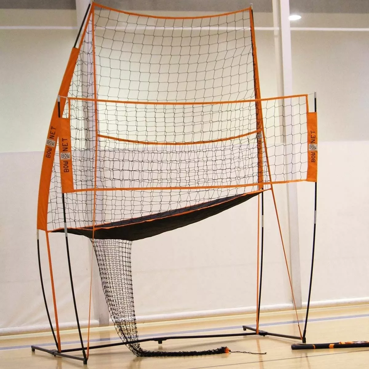 The Bownet volleyball practice station is a portable sports net that helps keep practices moving. It is excellent for hitting and serving practice and will give you more options of drills during practice as you can split off your servers and shooters into different stations around the gym. This net is a great option for players from high school to club teams and college. It has an easy assemply with only a 160 second set-up with 2 people, with no tools necessary. The station includes a durable, high quality volleyball barrier net, a sock catching set, and a practice court net to help improve a player’s setting and serving techniques without the regulation sized court net available. It features EAS technology (energy absorotion system) that diffuses the ball energy throughout the net to extend its lifespan while also providing stability, balance, and flexibility. The practice station is ultra-versatile as it has an adjustable front net height allowing you to change it from ladies regulation to men’s. It is super lightweight so you can take it across the gym floor without damaging the court with it’s non-marking rubber feet that will also allow for great stability and traction.