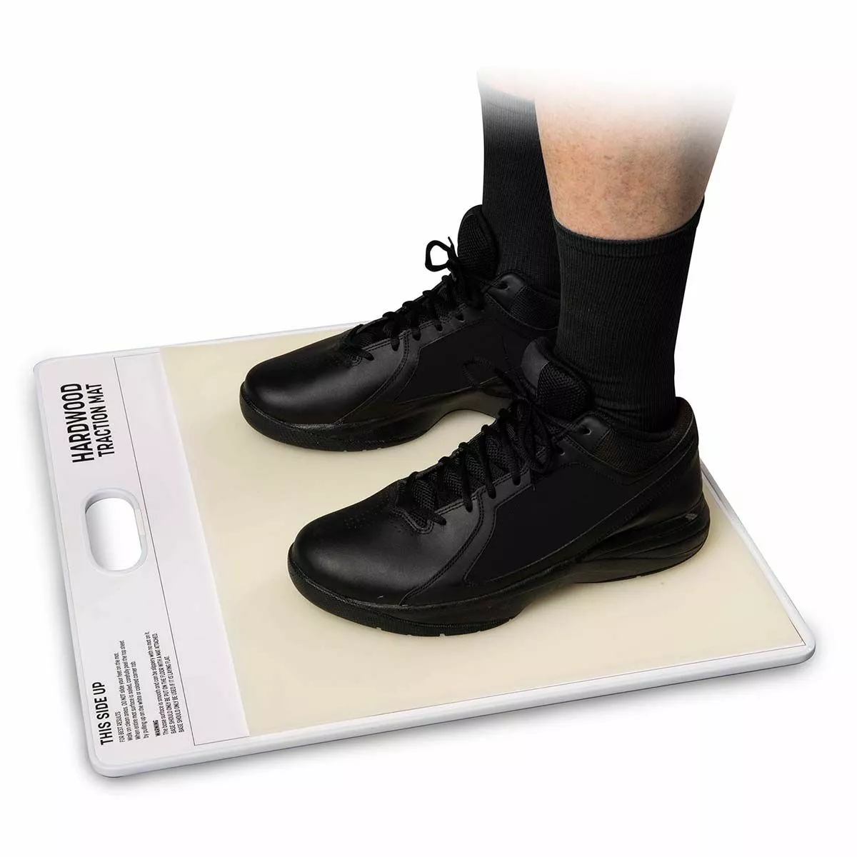 The Champro hardwood traction mat includes 60 traction sheets that provide an improved shoe grip on any gym floor. The traction sheets also help to remove dust, dirt and wax build-up from athletic shoe soles with one quick action. This traction mat kit eliminates the hand wiping of shoe soles for better traction and less slippage. These sheets are great for basketball teams, volleyball teams and physical education classes.