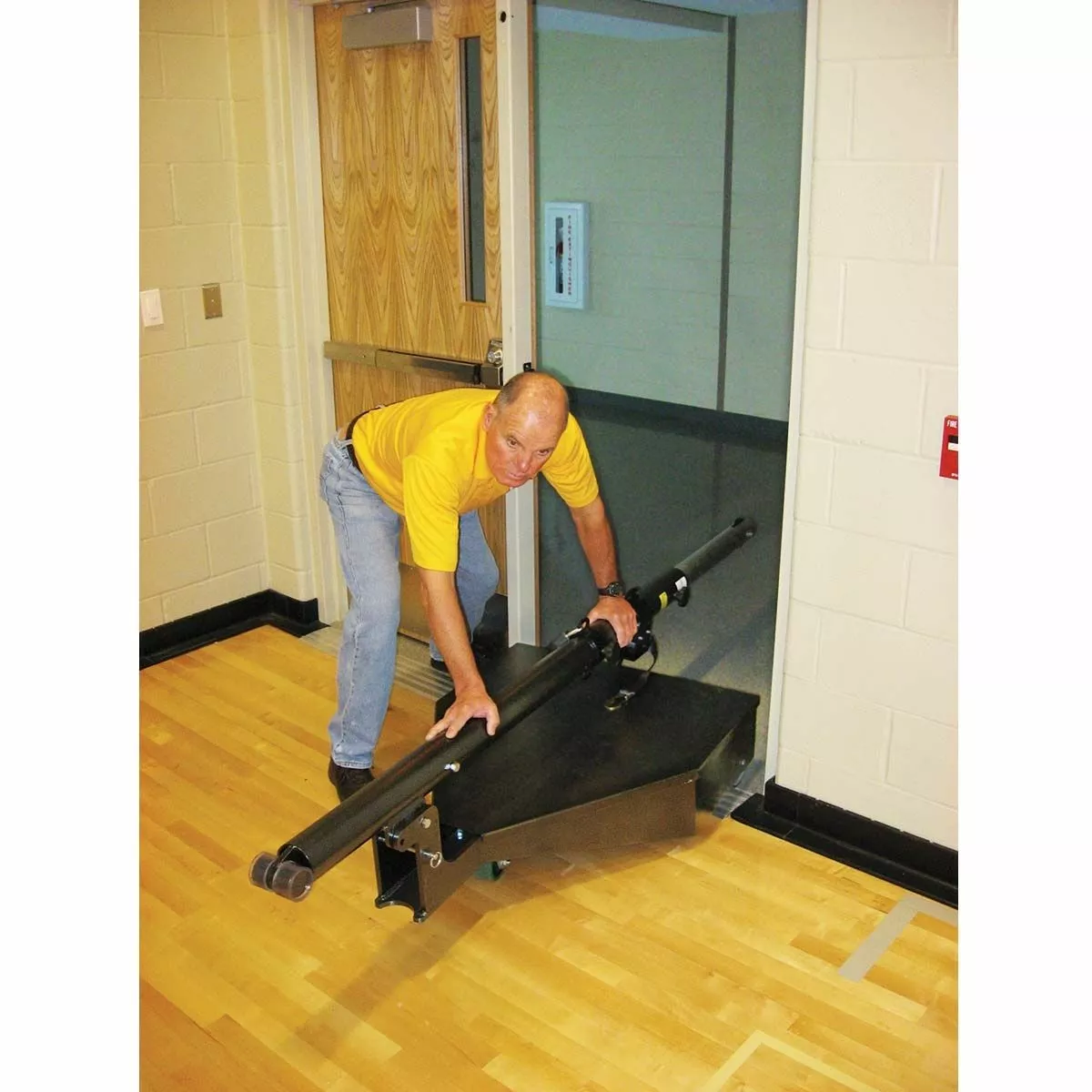 The First Team Horizon Portable volleyball net system is free-standing and does not require floor sleeves or floor anchors. The 700lbs of built-in ballast inside each base provides enough counter balance for competitive play. This portable net system is designed for quick and easy height adjustments for official men’s, women’s and junior heights, with just the turn of a knob. The Horizon Complete system includes First Team’s top quality kevlar net, antennas, rope covers, uprights, wheeled bases, and post and base padding. The portable base units can be easily rolled into a storage room and folded flat for compact storage. The built in anti-skid floor protector engages the floor automatically when the post is lifted. Spectators will have excellent visibility with the low profile base design. The worm gear driven net tensioner makes tensioning easy. Pad lettering is available (contact Anthem Sports for details).