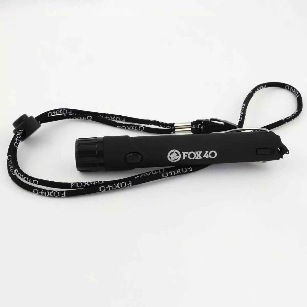 The Fox 40 Mini Electronic Whistle provides a loud, clear and consistent sound with the push of a button. The whistle’s push button functionality offers a hygienic solution for multiple operators. The mini electronic whistle features an ultra slim body design that can be operated with one hand. The destinct tone of the whistle can be aimed in specific directions. Includes metal ring, clip, Fox 40 custom lanyard and 4 cell batteries.