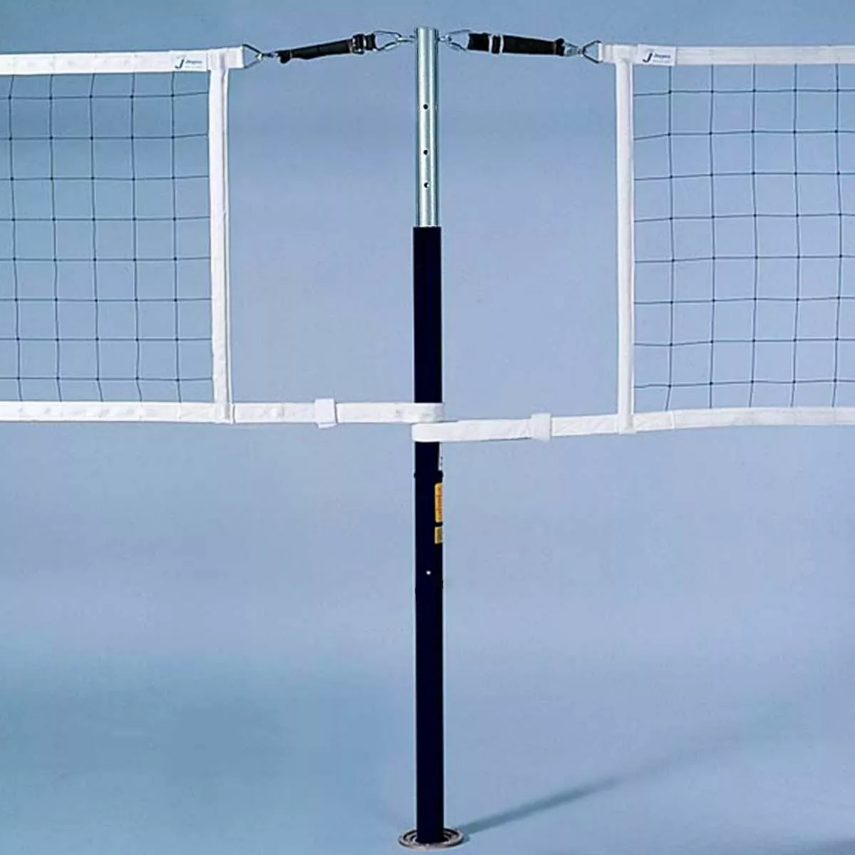 Extend your program with this center standard package for side by side court set-up. The Jaypro PVBC-500 center standard package can turn your gym into a two-court set-up when accompanied with the Jaypro PVB-5000 Featherlite collegiate volleyball net system, see below. The patented Flex Net eliminates all cumbersome cables and replaces them with heavy-duty woven nylon top and bottom bands. The headband attaches directly to the winch leader strap to provide superb net tension. Designed for systems set at a maximum of 36′ 8′ on center and a minimum of 35′ on center (normal spacing is 35′ 10″).
