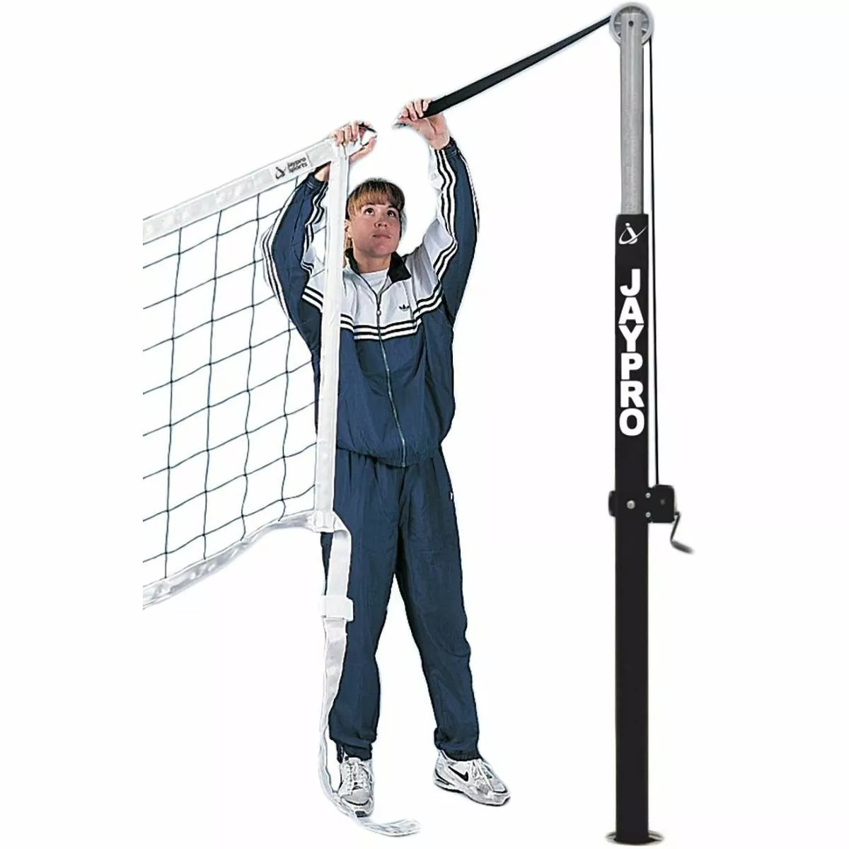 The Jaypro PVB-45U uprights are high performance all aluminum and affordable to virtually every volleyball program. The pin-stop height adjustment allows for sixteen different net heights ranging from 6′-6″ to 8′-2″. The Featherlite aluminum design is lightweight and easy to move around the gym and to set-up. These 3-1/2″O.D. uprights have a factory installed adapter at the bottom that allows them to fit into 3″ diameter floor sleeves.