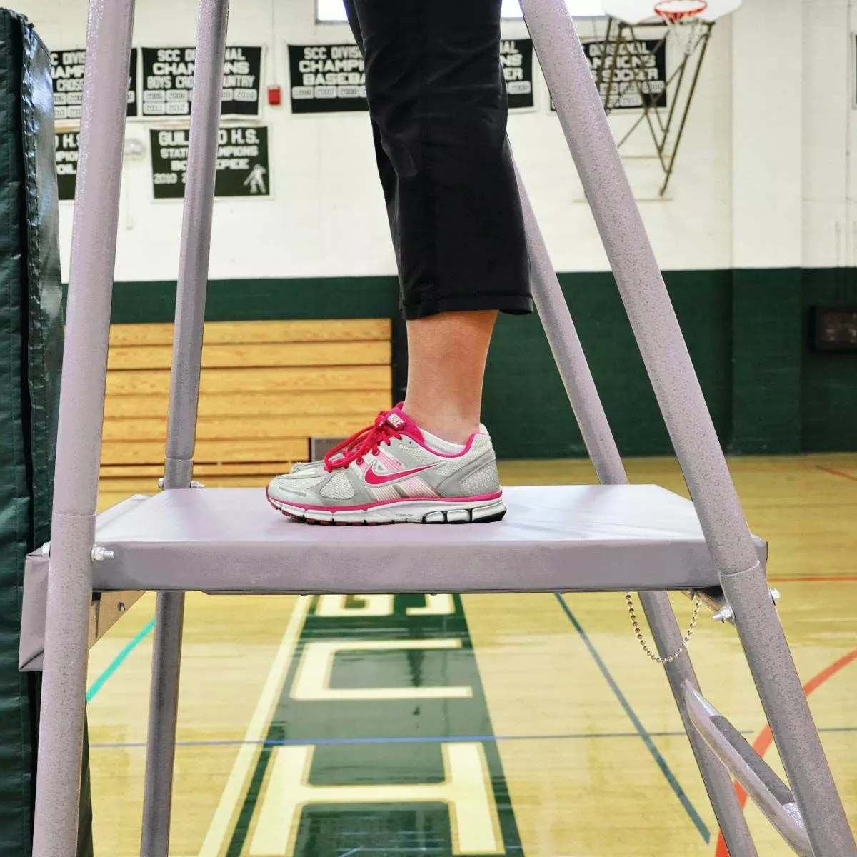 The Jaypro MEGA-REF is not only incredibly convenient but also the most durable stand on the market. The 1 5/8″ heavy wall powder coated pipe and all welded frame support with non-slip foot treads provide the best stability and make this stand an investment that will prove itself year after year. A vinyl coated, padded platform gives the referee comfort throughout the game. The four legs have protective rubber tips as well as 4″ non marring wheels in the front for effortless transport and easy storage.