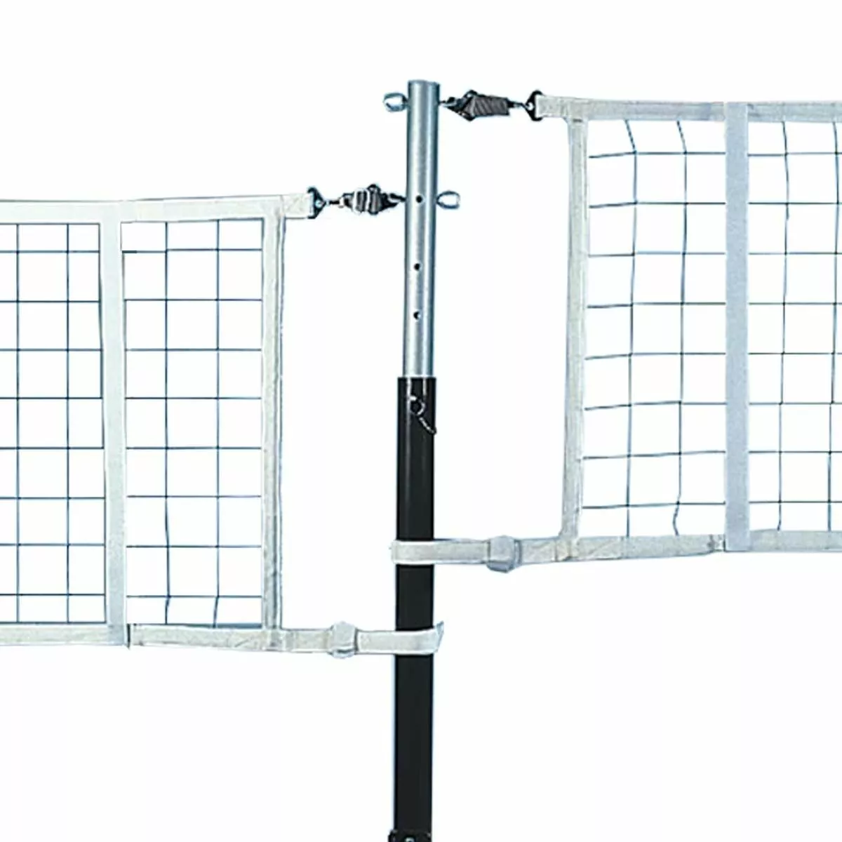 Extend your program with this center standard package for side by side court set-up. The Jaypro PVBC-700 center standard package can turn your gym into a two-court set-up when accompanied with the Jaypro PVB-7000LS Powerlite International volleyball net system, see below.The patented Flex Net eliminates all cumbersome cables and replaces them with heavy-duty woven nylon top and bottom bands. The headband attaches directly to the winch leader strap to provide superb net tension. Designed for systems set at a maximum of 36′ 8′ on center and a minimum of 35′ on center (normal spacing is 35′ 10″).