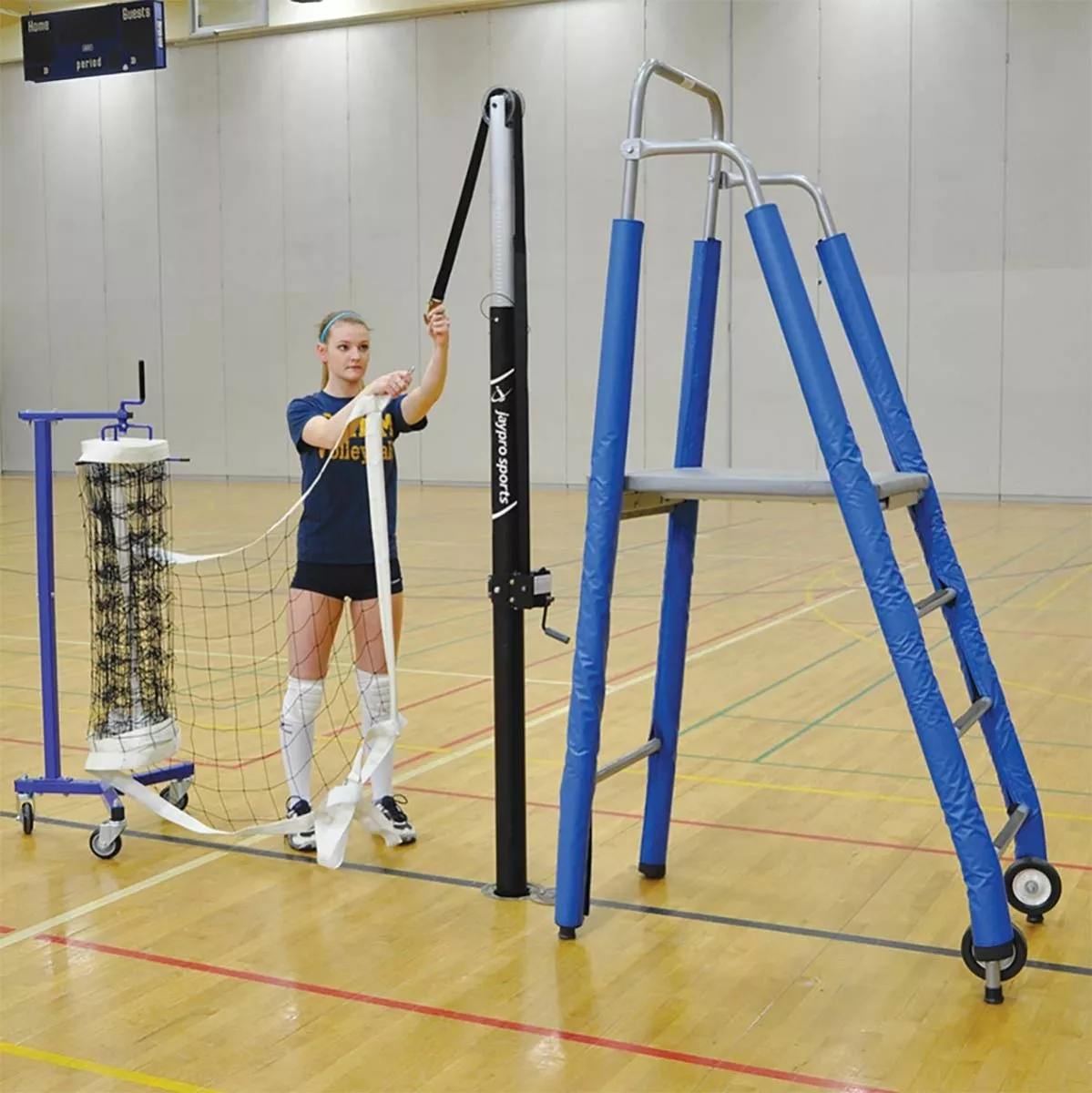 The Jaypro VNK11 volleyball net storage cart easily stores any size volleyball net with its steel tube construction. The cart comes with non-marking swivel casters for easy transport and includes storage bag for your net.