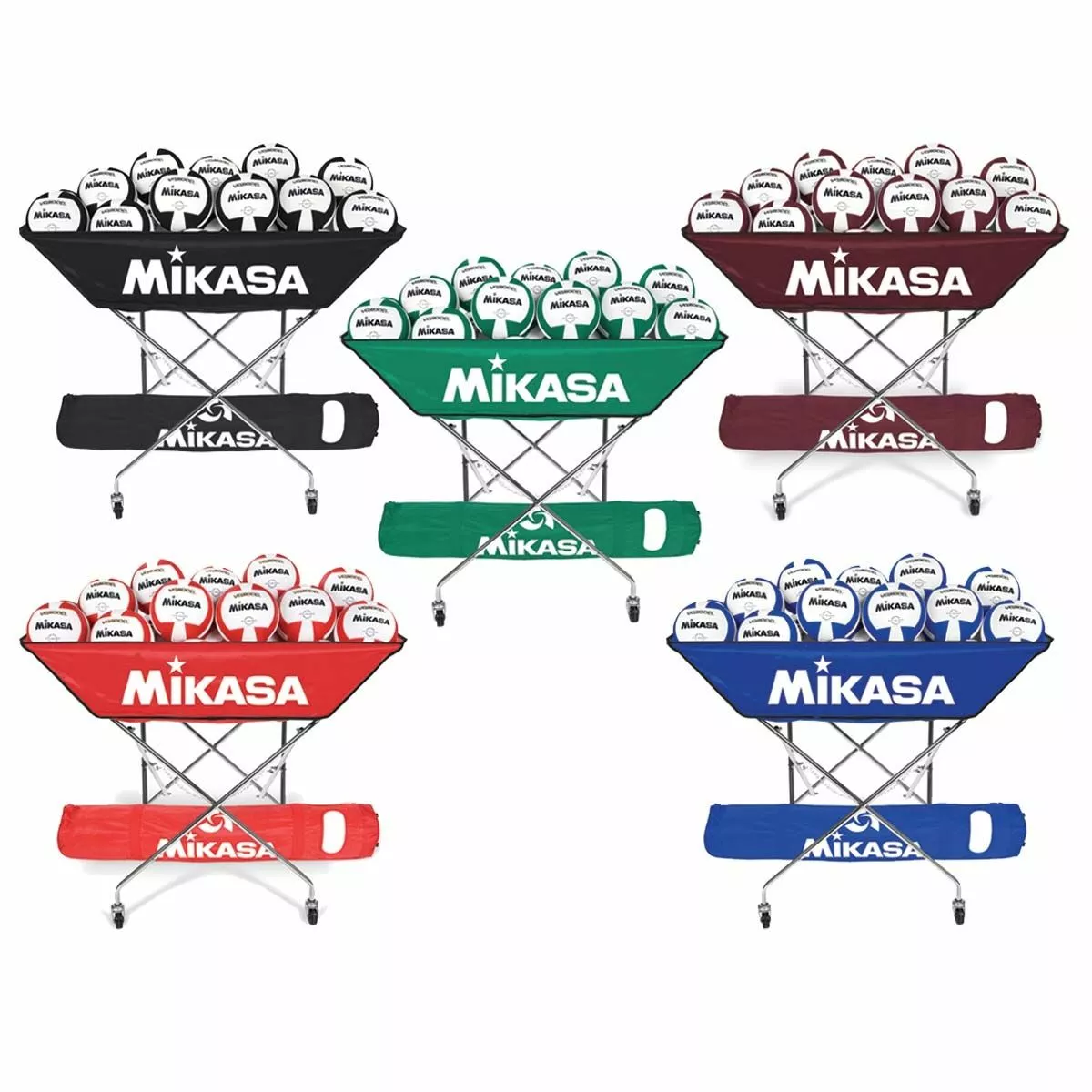 The Mikasa Volleyball Hammock Ball Cart features a sturdy steal frame to hold 24 volleyballs. This ball cart is collapsible for easy storage and includes a nylon carry bag with an adjustable shoulder strap.