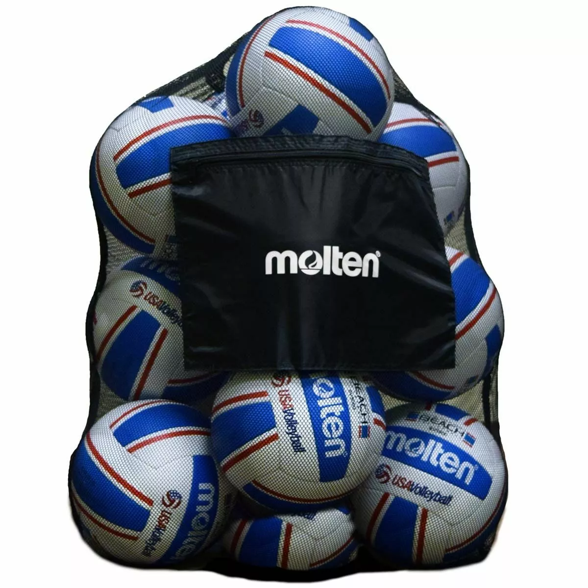 The Molten SPB mesh bag is a durable, lightweight ball bag that can hold up to 12 inflated official size volleyballs or soccer balls and is equipped with a zippered pocket for storage. The SPB’s mesh design filters debris to keep the bag clean and keep sand and dirt out. The SPB bag easily compacts for storage when not in use.