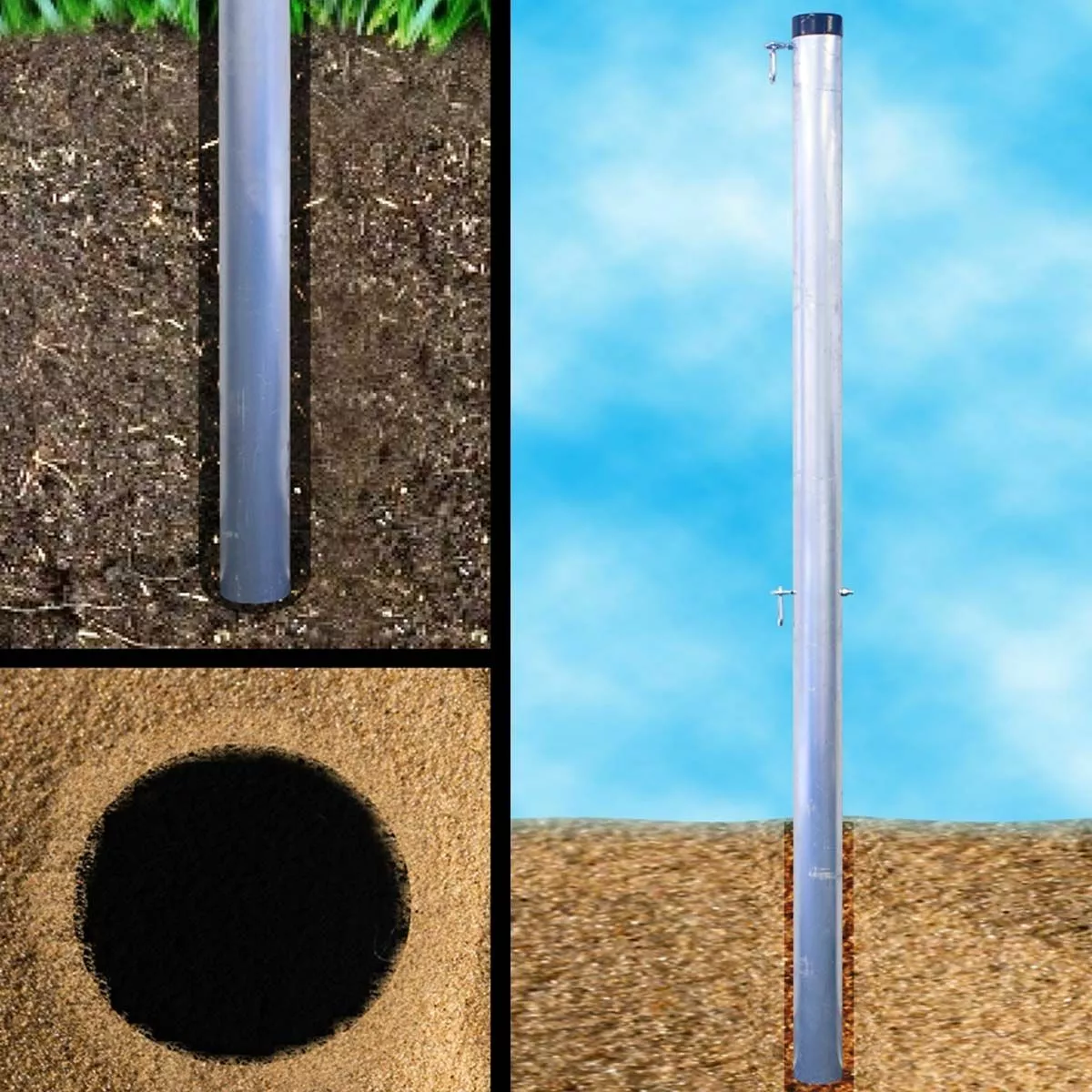 - Two-piece aluminum poles with zinc plated hardware