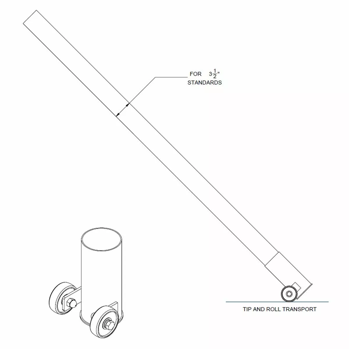 This volleyball standard transport boot is designed to easily transport a 3.5″ volleyball standard. Simply slide the volleyball upright into the boot then tip and roll for easy transport. The transport boot is built with a welded steel construction covered in a durable powder coated finish. The two non-marking wheels won’t scuff up you gym floor.