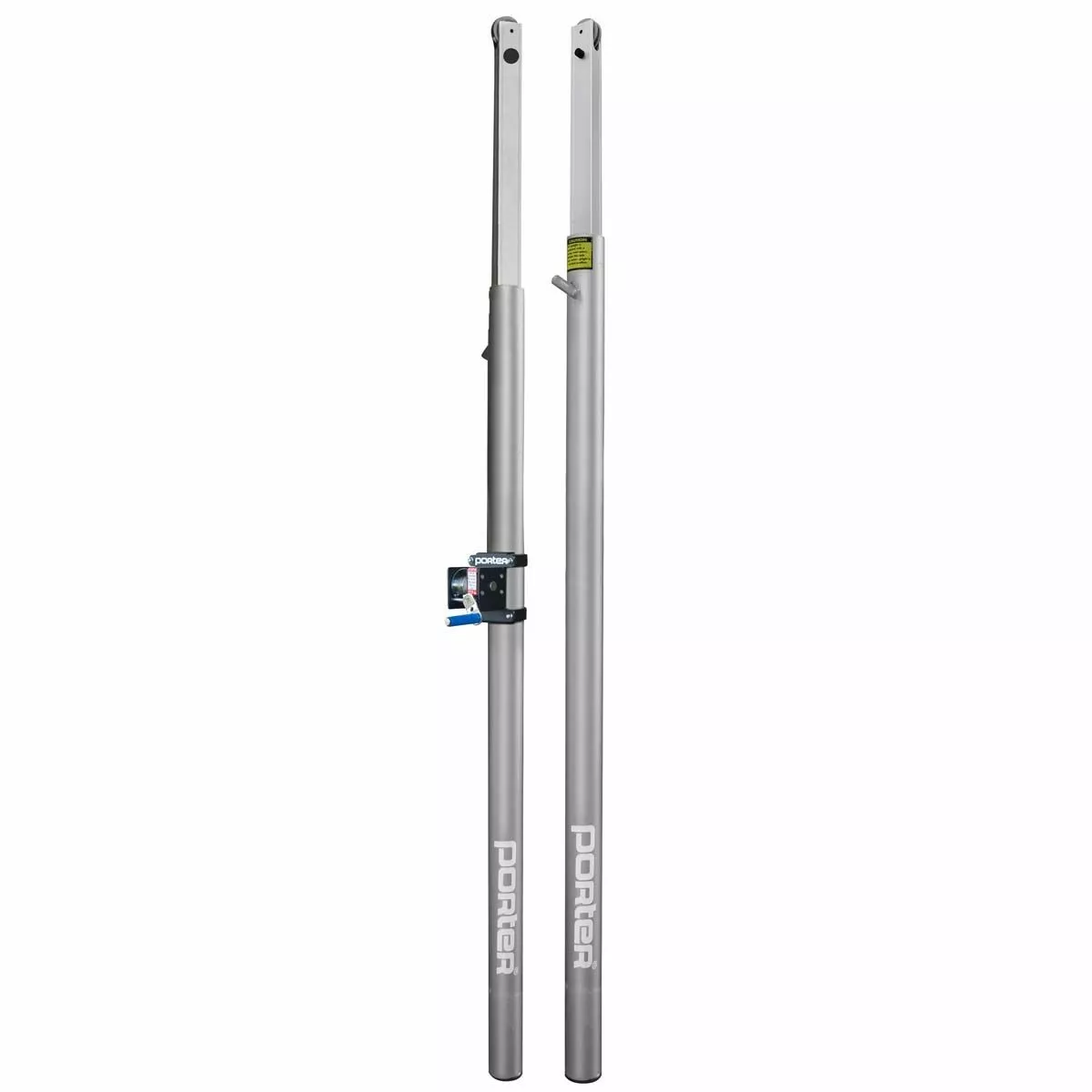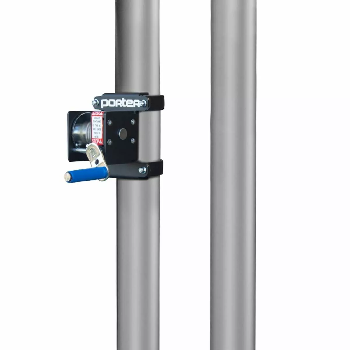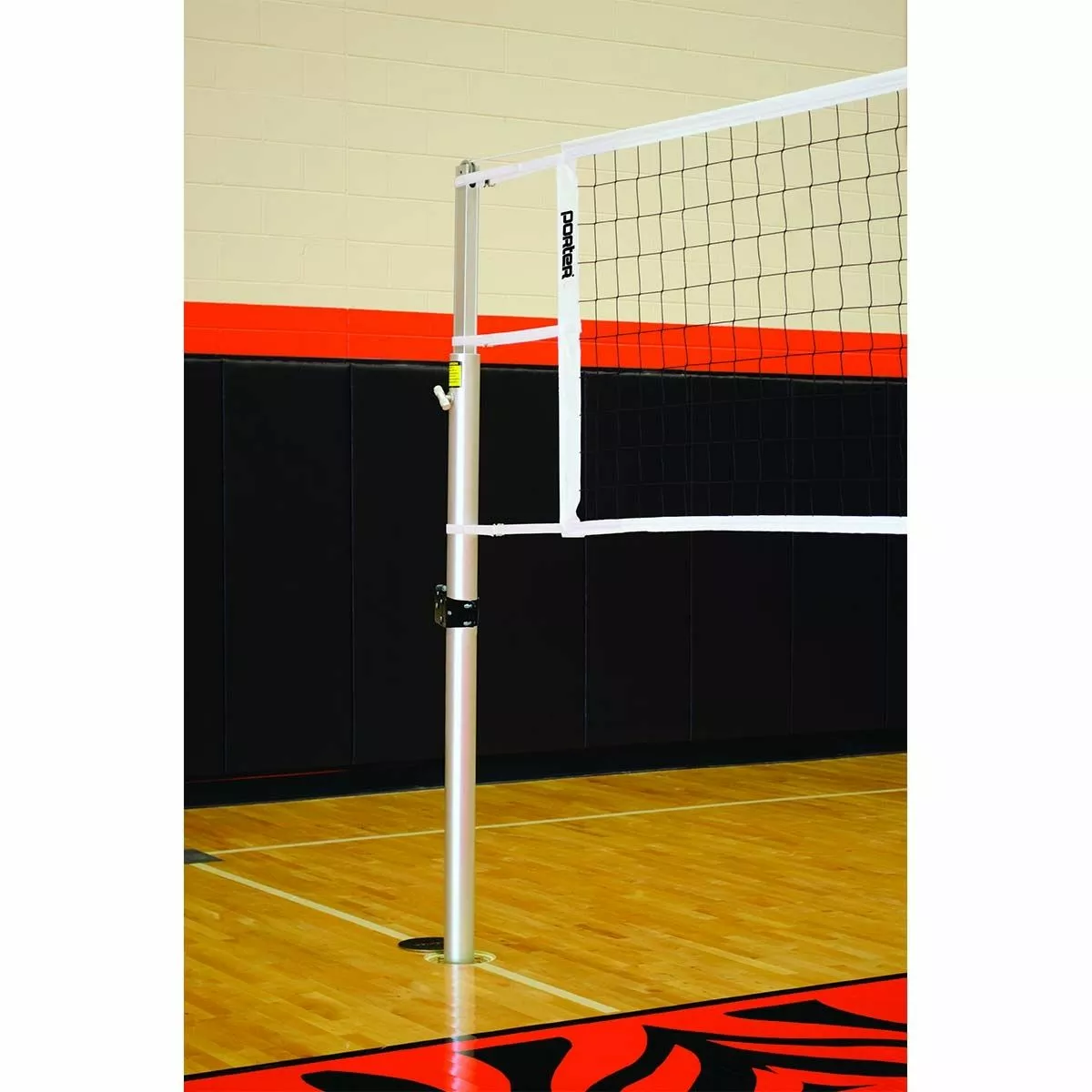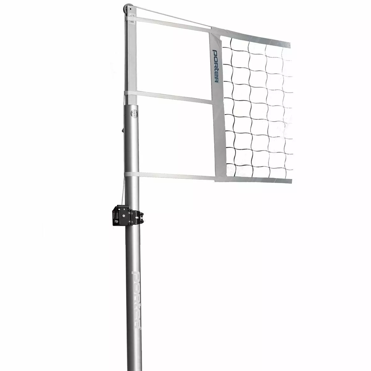 The Powr-Line volleyball uprights are competition end standards that are the most popular among high schools. They are designed for safety, easy to transport and set up quickly. The height settings are unlimited and can be set custom anywhere from elementary through Olympic competition height. An internal counter-balance spring eases the height adjustment with a constant tension spring mechanism. The telescoping upright glides smoothly up and down.This high strength, lightweight aluminum volleyball system is designed with maximum safety, easy storage, and quick set-up in mind. The Powr-Winch net tensioner provides for super fast net installations. Nylon tension strap on Powr-Winch eliminates cable kinking, coiling and fraying and adds life expectancy to the net. A removable crank handle is included. This positive disc brake release device provides the utmost in a durable, yet safe and simple net attachment system. Porter’s tension strap with quick release snap hook eliminates the need for the cable to wrap on the winch drum which prevents kinking and fraying and adds to the life expectancy of the net. The Powr-Winch is positioned on the standard away from the court for added player safety.