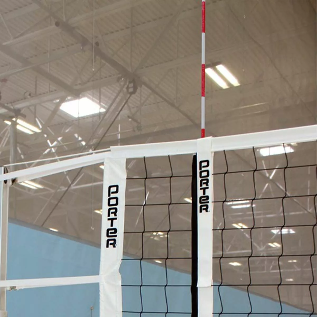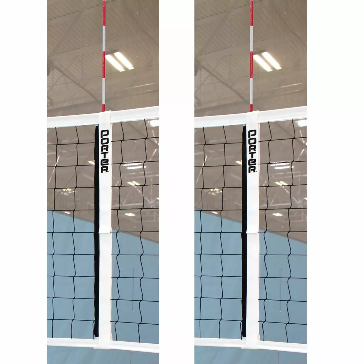 This set of 2 Porter Powr-Line volleyball net boundary markers and 2 volleyball net antennae meets all FIVB, USVBA, and NAGWS competition requirements for your 32′ x 39″ nets. The Powr-Line boundary markers are 2” wide white polyester reinforced vinyl straps with hook & loop attachment strips that secure easily to the net. The net antennae are international quality and feature molded, positive locking style clamps for securing to the top and bottom net hems.