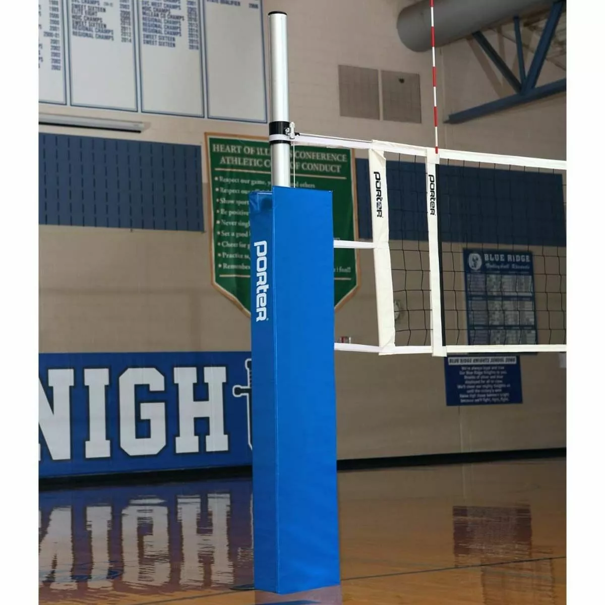 The Porter Powr-Rib II package is designed for strength and ease of set-up at a competitive price with all the features needed to play competition volleyball. Powr-Rib II uprights are constructed of high strength, lightweight aluminum that makes it easy to set up and take down on a daily basis. These best-selling uprights have multi-sport functionality including volleyball, tennis and badminton and are perfect for junior high, high school and intramural use. This package includes a pair of standards, upright protective pads, antennae, net chain and net.