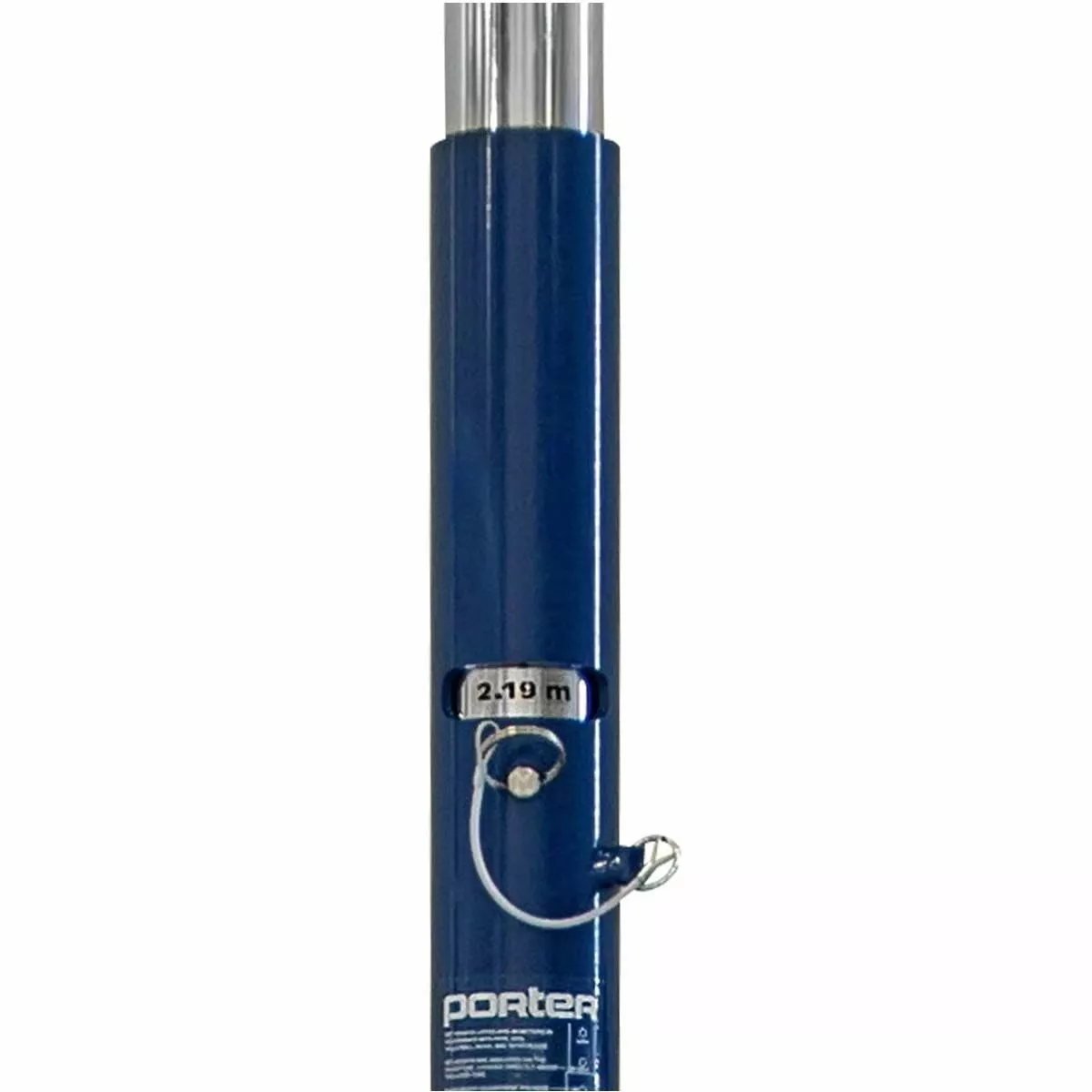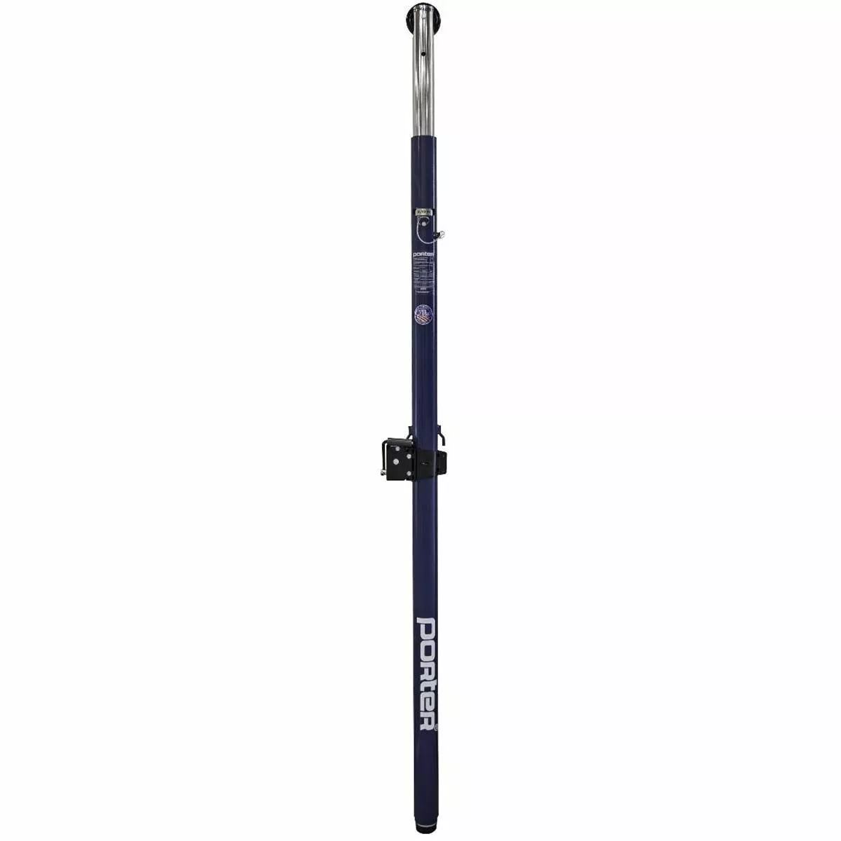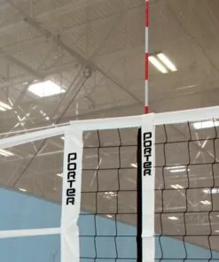 These Powr-Steel 3″ volleyball end standards from Porter are built with an interlocking steel construction for high rigidity and precise alignment. This pair of uprights features one winch post and one end post. The uprights feature a telescoping design with a high strength pull pin for easy height adjustment to meet all USAV, NCAA and NFHS requirements for competition. A powder coated finish on the bottom part of the upright provides corrosion resistance. A self-locking worm drive prevents net snap back and loss of tension. The bottom of each upright is equipped with an adjustable rubber foot that protects finished floors when moving the standard. This rubber footing can be height adjusted to accommodate ground sleeves that were installed too deeply. Each upright weighs under 50lbs.