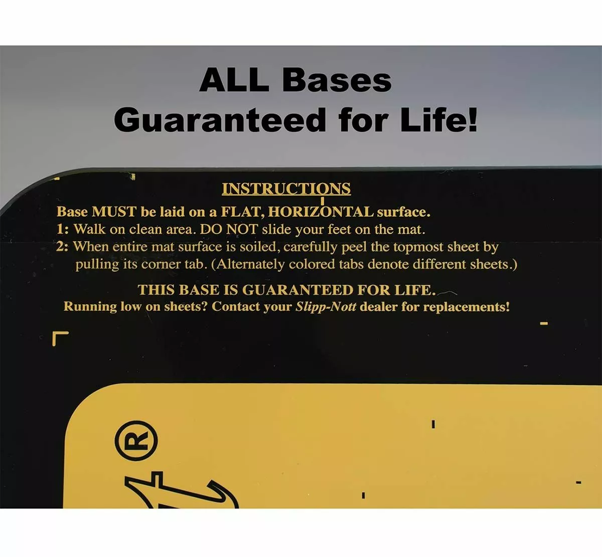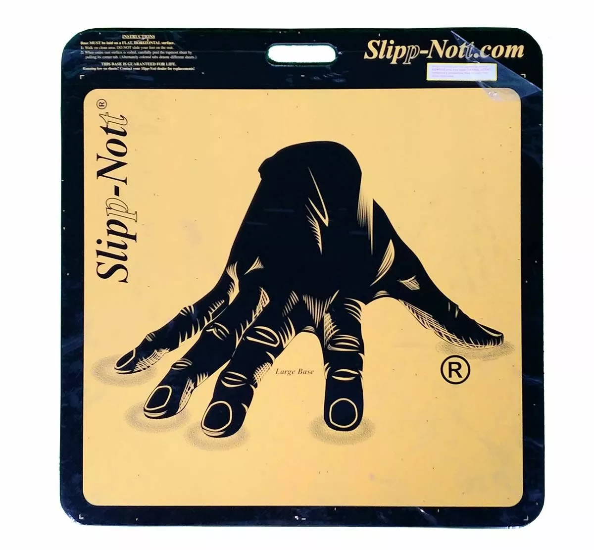 Get a grip on the court with the Slipp-Nott sticky mat shoe traction system. The Slipp-Nott traction system eliminates hand wiping of shoe soles to gain better traction and less slippage. This sticky mat system is ideal for basketball, volleyball and other indoor sports. Removes dust, dirt and wax build-up from athletic shoe soles with one quick action. Ribbed rubber bottom for floor protection. For storage, keep the mat flat and out of the sun. Contains one large LS60 shoe traction base. Traction sheets sold separately (see below).