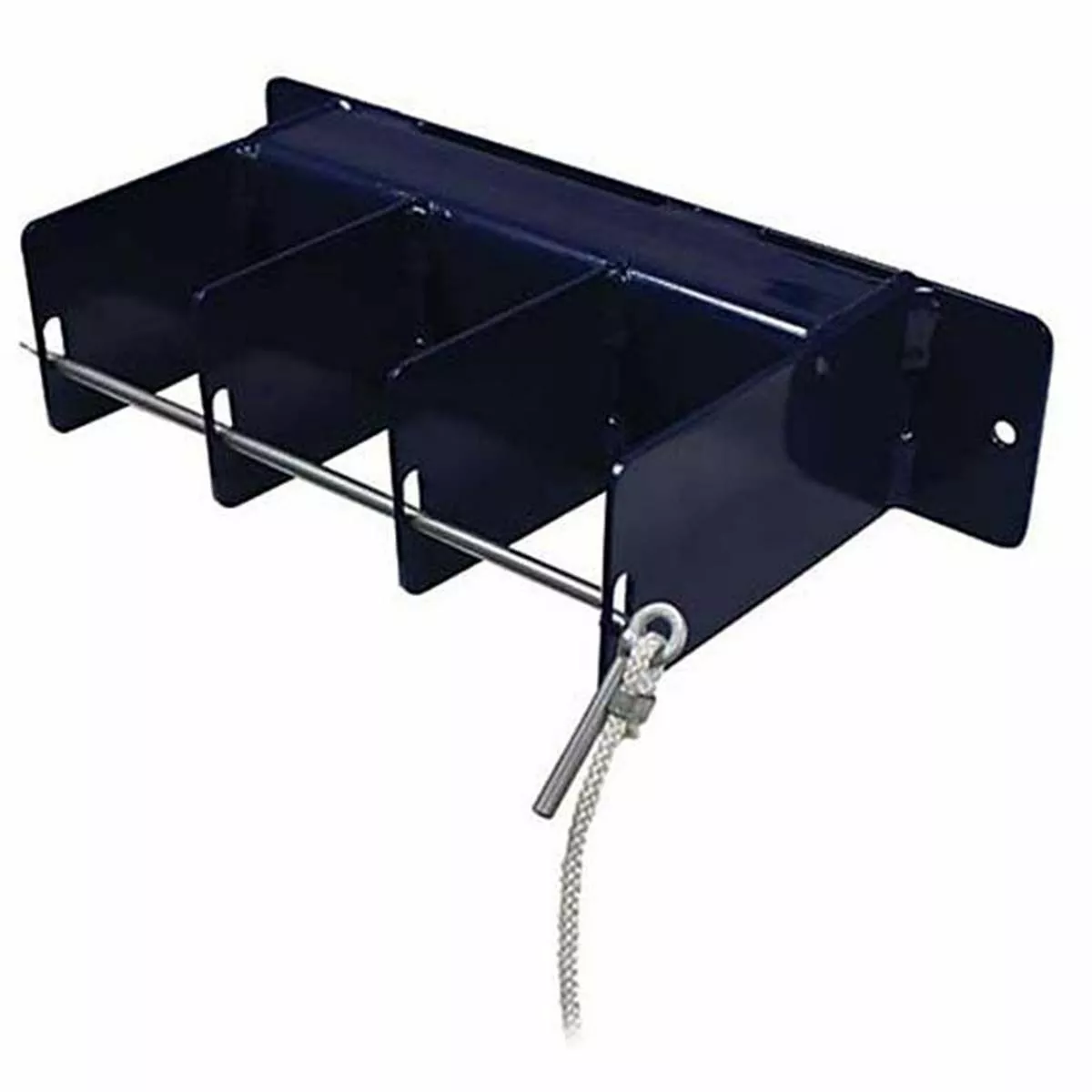 This Spalding wall rack holds three uprights securely to your wall in an upright position for easy, space efficient storage.