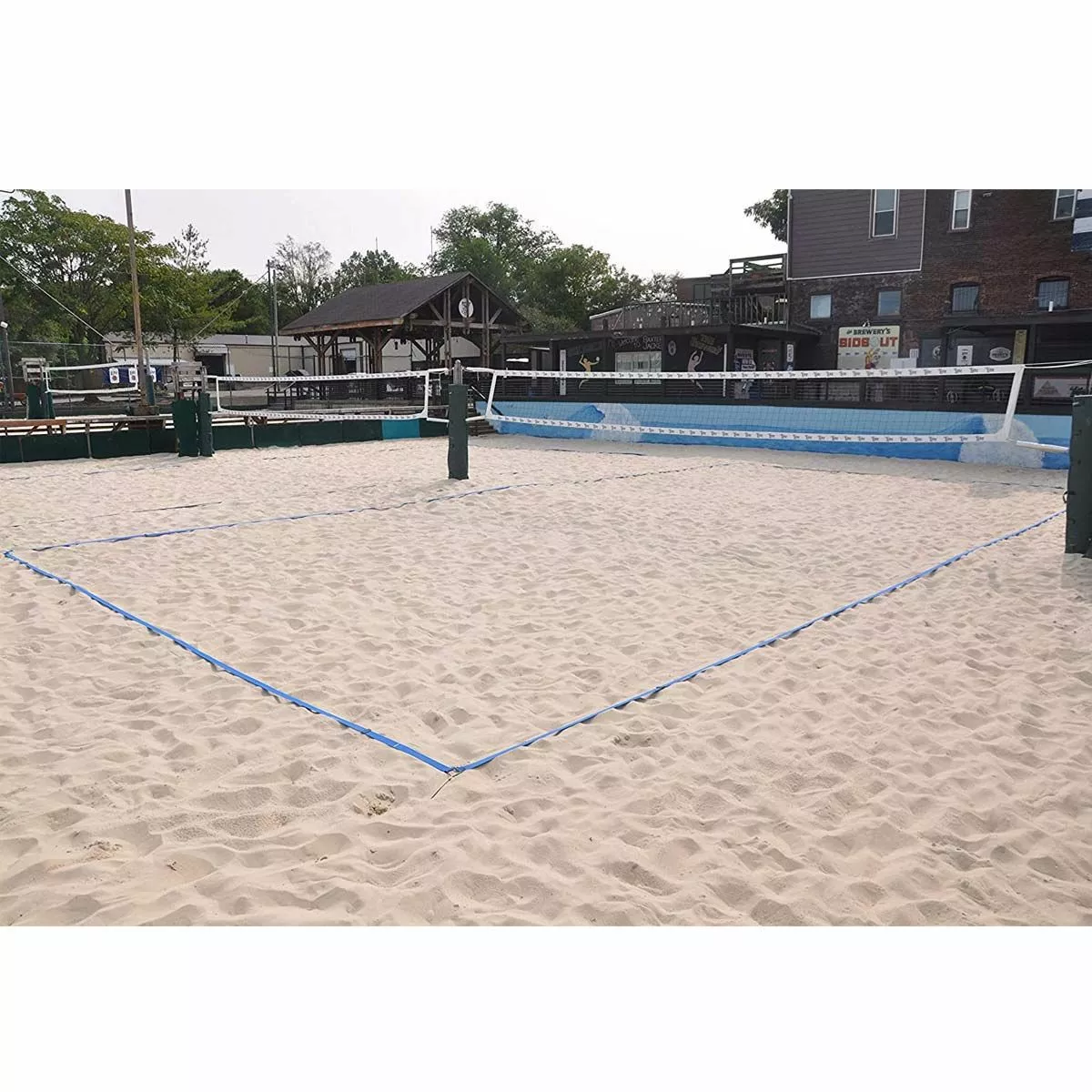 The Tandem adjustable volleyball court line system allows you to define your own volleyball court on sand or grass. This durable 2” nylon boundary line system is adjustable to accommodate a regulation size court (30’ x 60’) or a USAV short court (8m x 16m). The adjustable design allows for quick and easy court size modifications. This system also includes rope, corner ties, center court marking, heavy-duty plastic corner stakes, and a convenient plastic reel for easy assembly and storage.