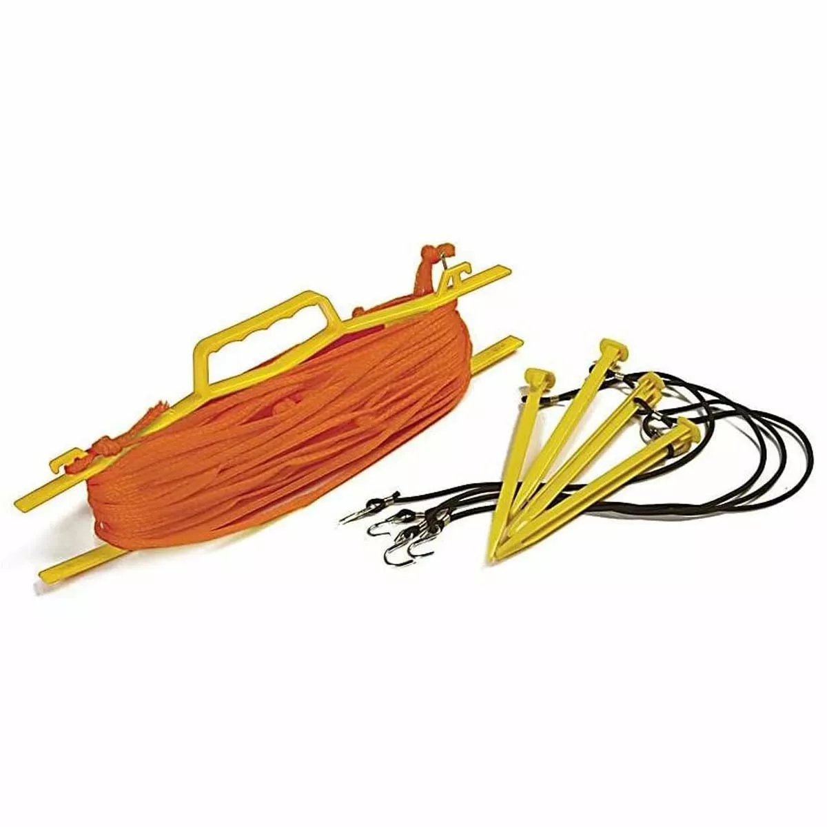 - Includes storage reel, corner ties, center court marking, and plastic corner stakes